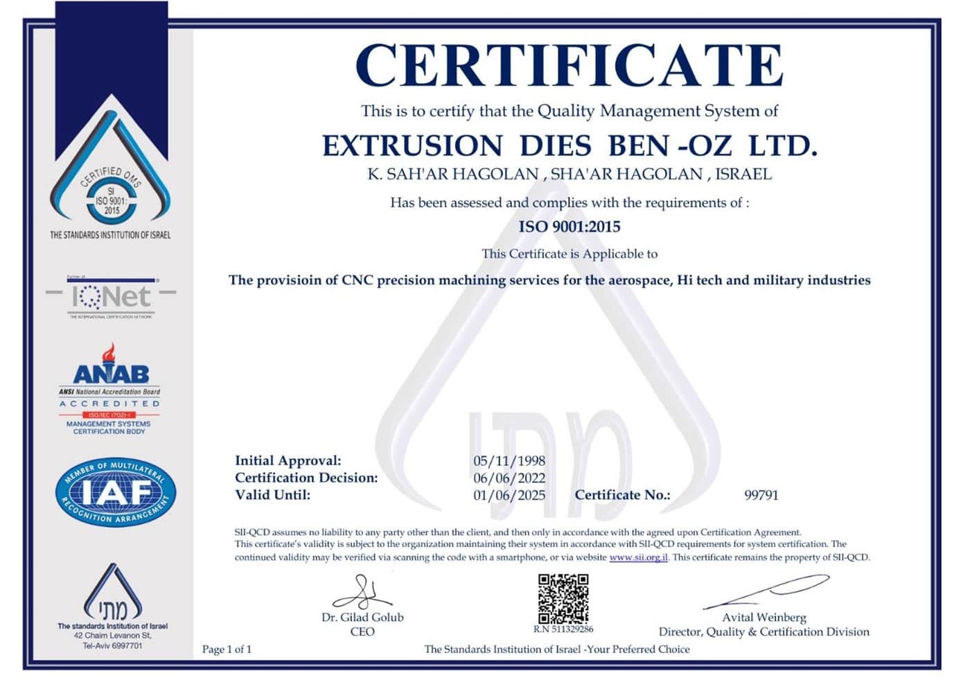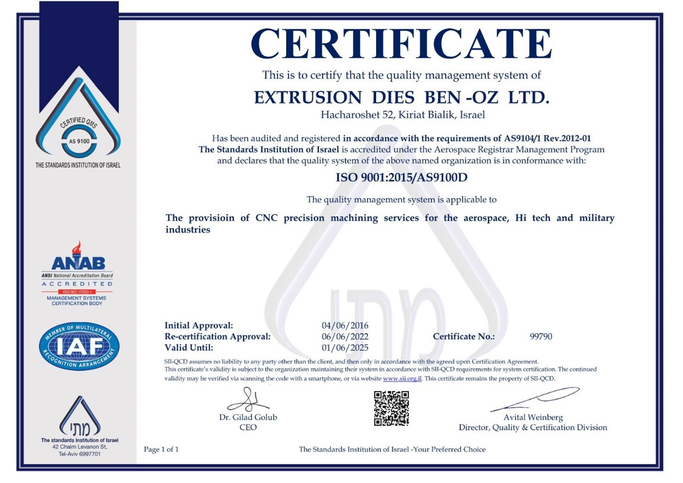 דרישות איזו ת"י 9001:2015 ISO ותקן תעופתי AS9100D.